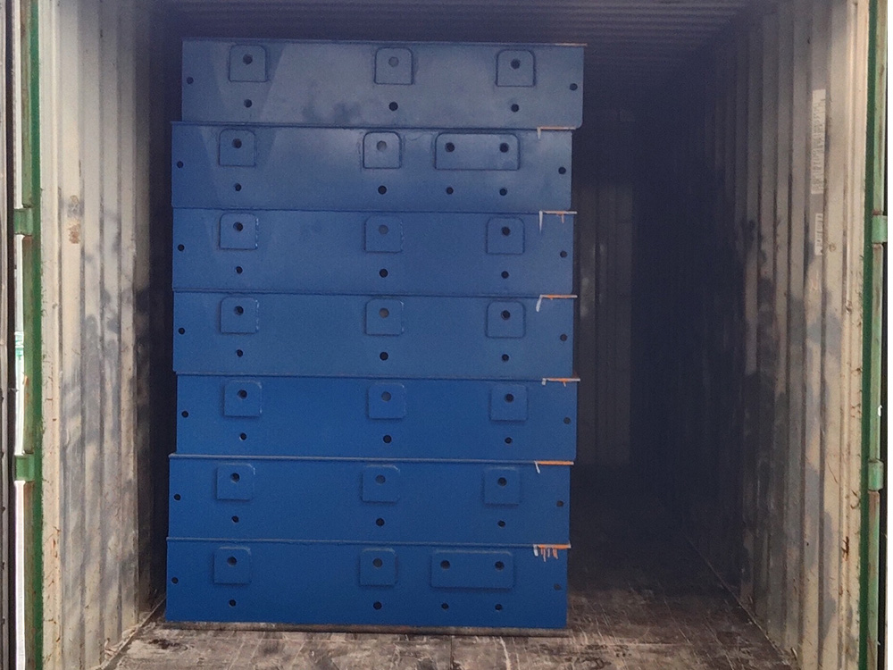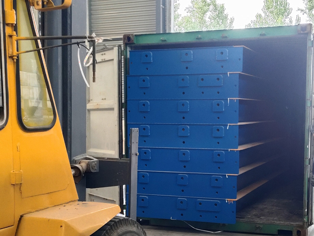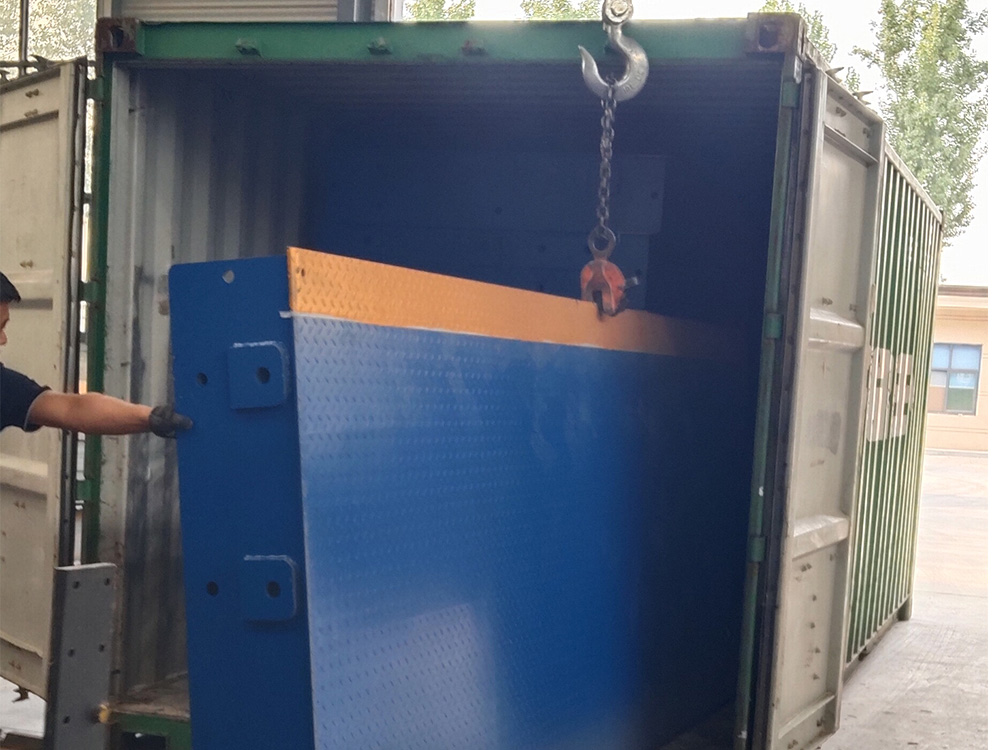 采購背景  新鄉(xiāng)迪科瑪機(jī)械有限公司由于出口肯尼亞訂單需求委托恒瑞稱重生產(chǎn)加工一臺寬3米,長18米,定額100噸分體式數(shù)字汽車衡。此地磅采用安鋼Q235B材質(zhì)加厚中板,采用四節(jié)八塊分體式組合結(jié)構(gòu),便于出口貿(mào)易集裝箱運(yùn)輸。同時(shí)配備柯力出口型數(shù)字傳感器,柯力20008出口型英文數(shù)字儀表,此批分體秤已順利交貨裝車,完成交付。