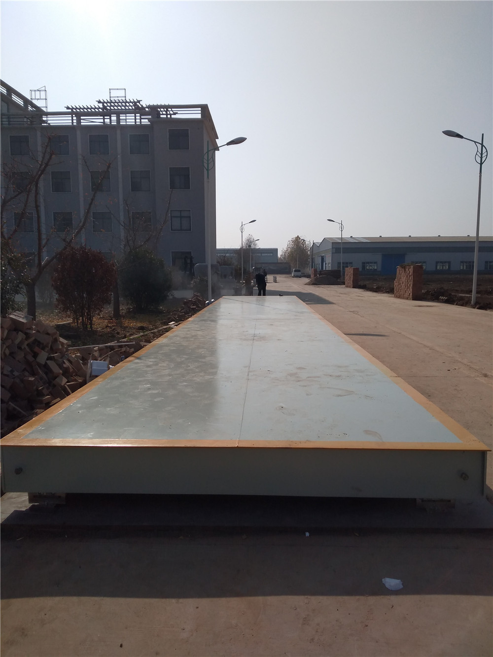 采購背景:許昌鄢陵鑫合源木業(yè)有限公司內(nèi)部倉庫存在大量木料的入庫與出庫,為解決大宗貨物的計量問題,采購了河南恒瑞稱重3x18m定額100噸的數(shù)字汽車衡,由于廠區(qū)內(nèi)部路面已經(jīng)全部硬化,無法開挖基礎(chǔ),本次采用預制鋼板免基礎(chǔ)施工的安裝方式。鄭州許昌地磅廠家,認準河南恒瑞稱重!